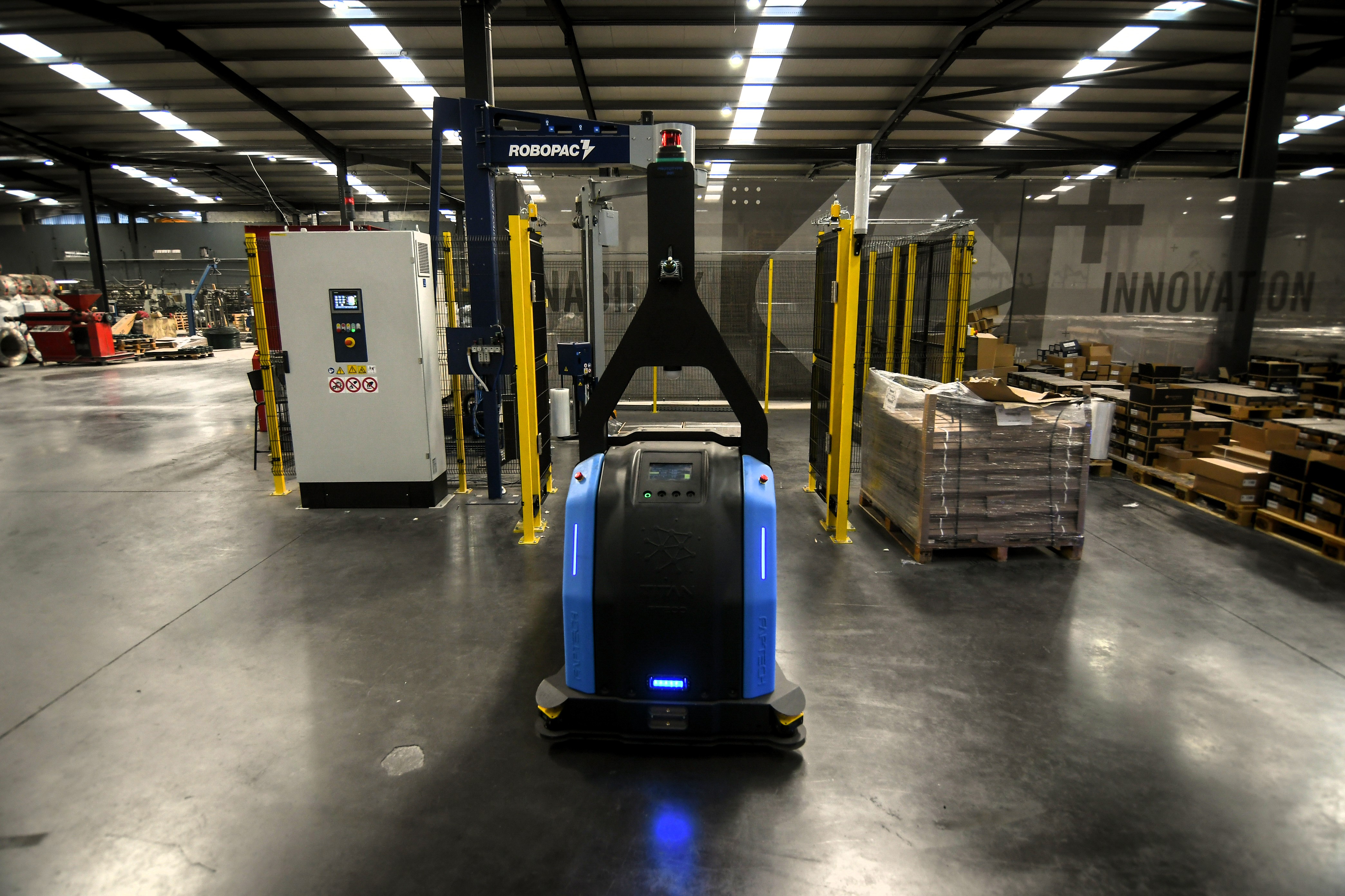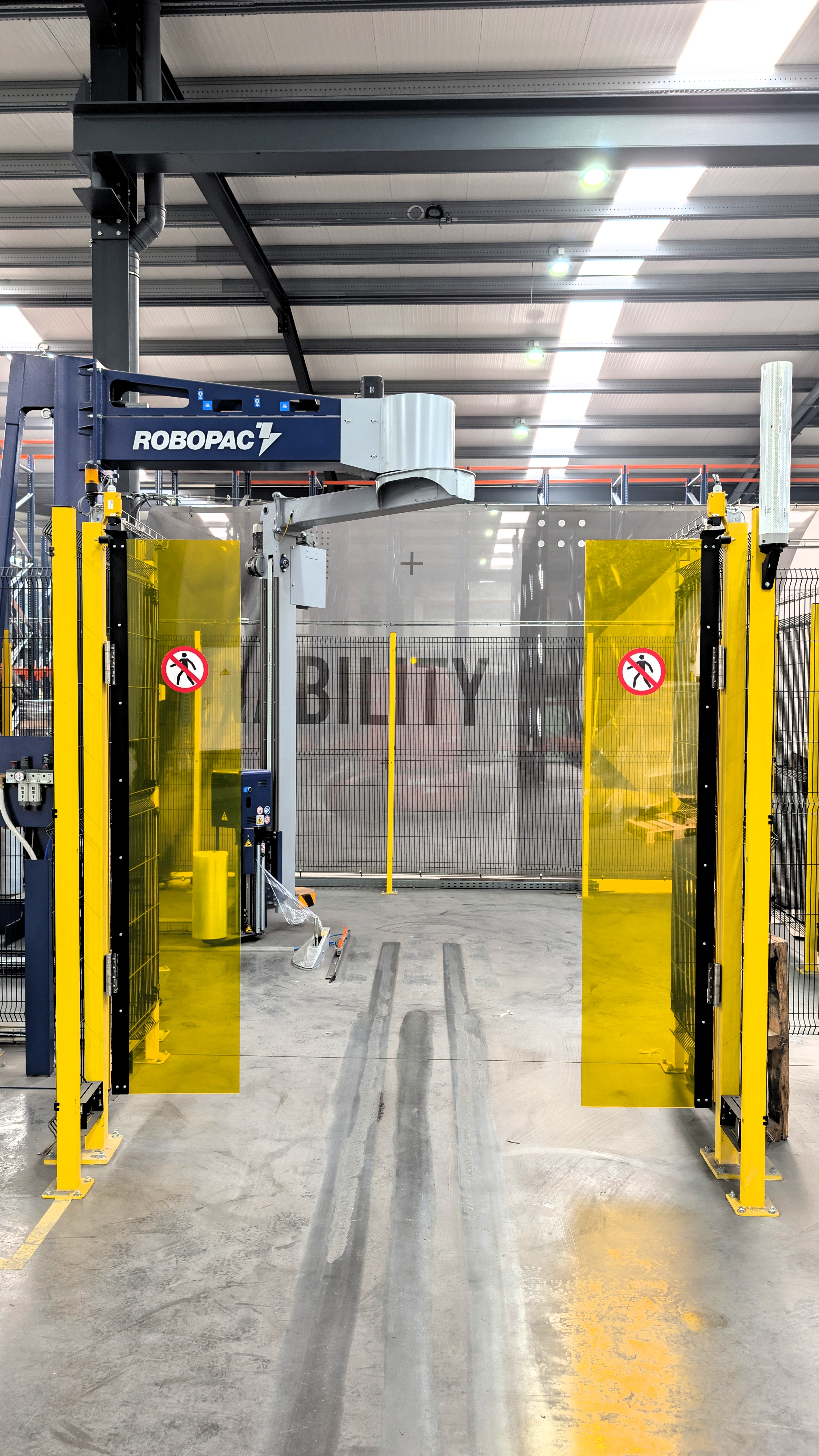 In this project, Faptech raised the standard of logistical efficiency by implementing a fully autonomous packaging cell. The core of the operation features a Robopac Rototech 3000 wrapping machine, perfectly integrated into an AMR (Autonomous Mobile Robots) ecosystem.